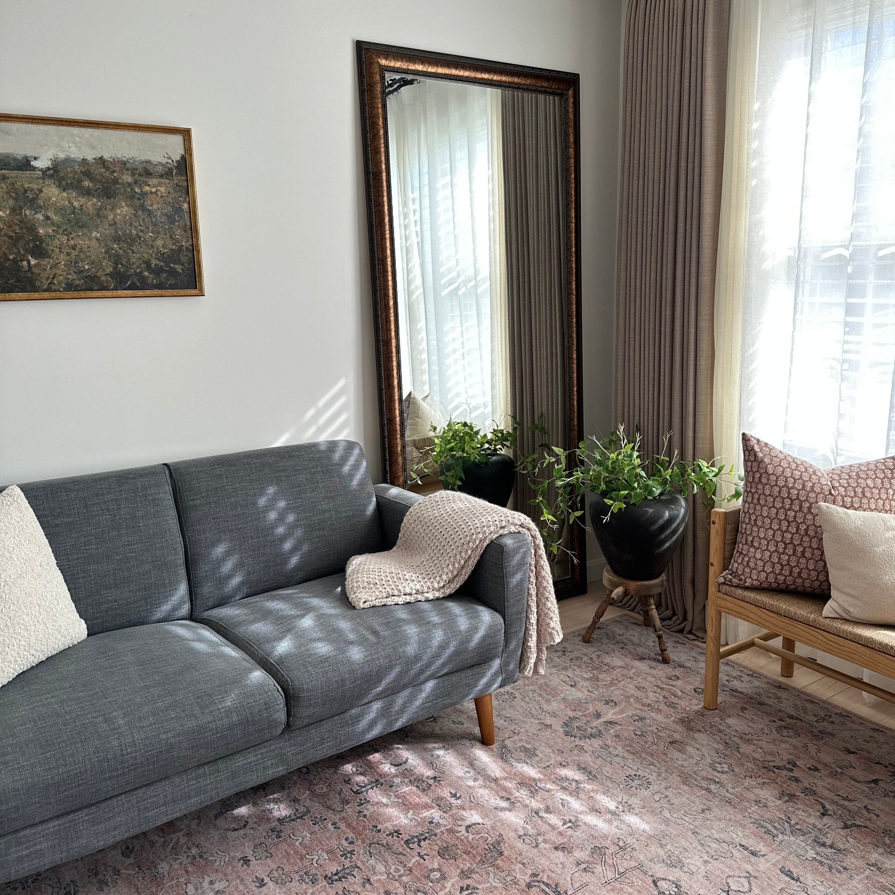 Begin by entering the desired height and width of your new custom framed mirror. Please note that the dimensions you select are for the outside edge of the frame, including the mirror.