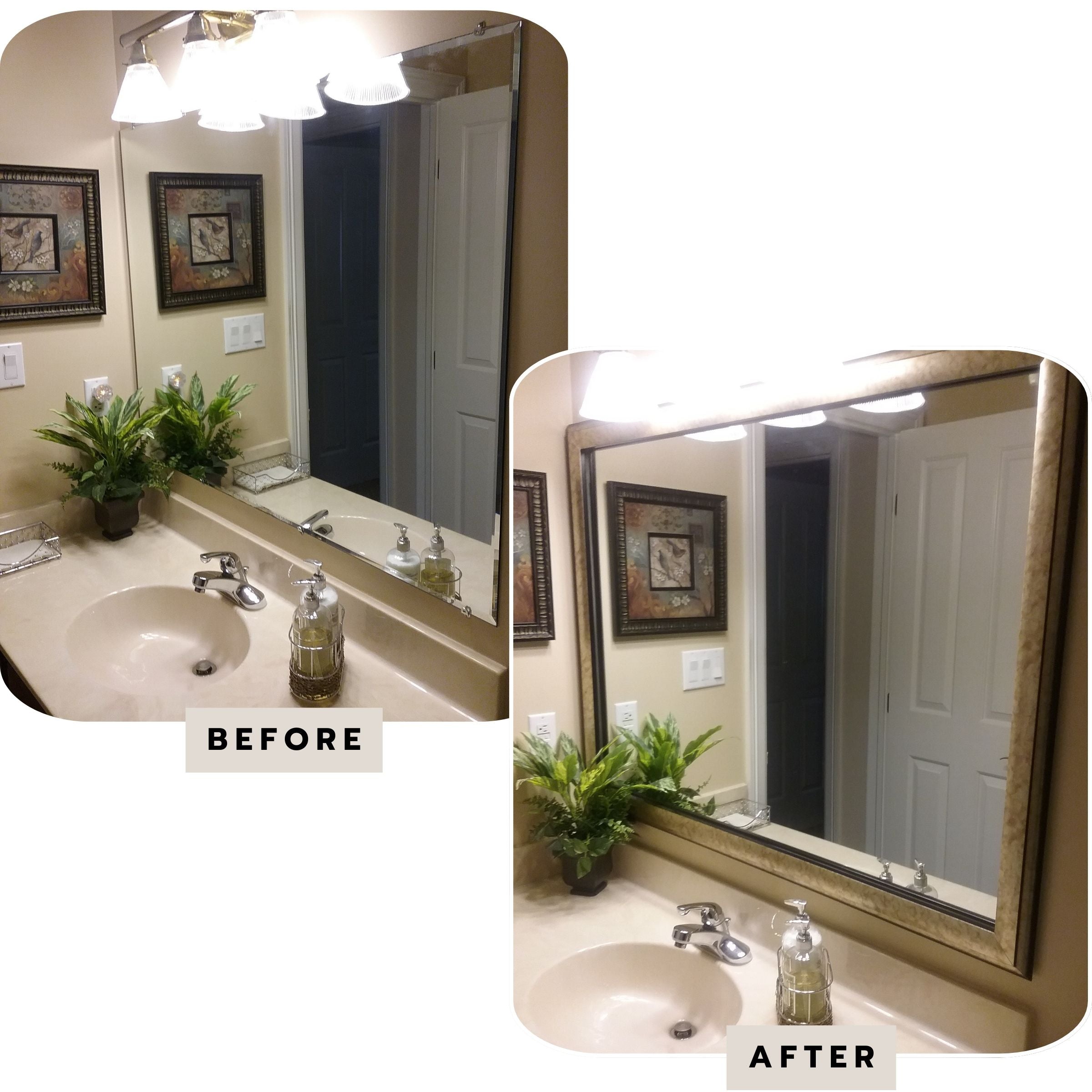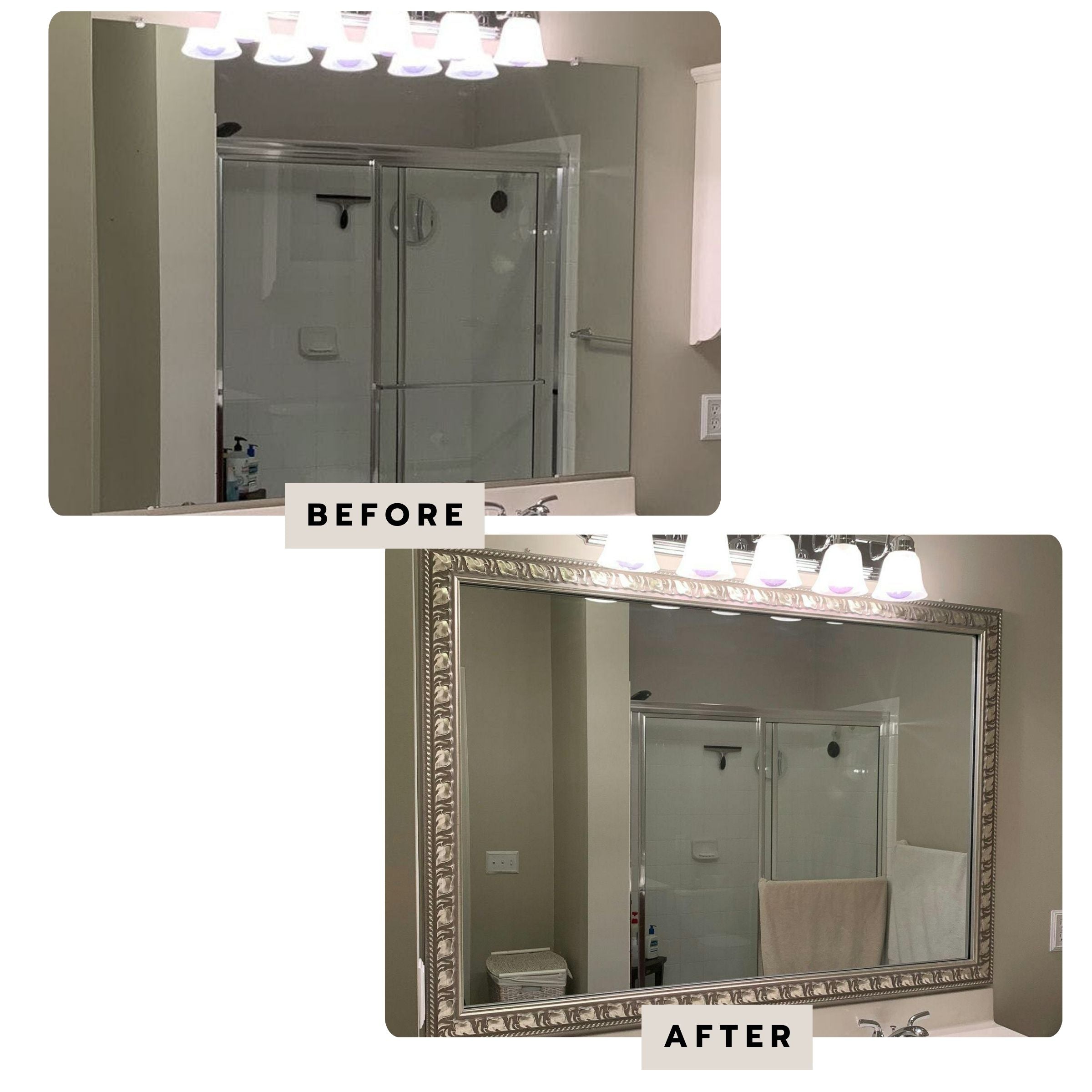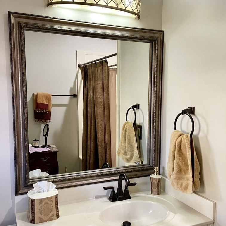 Begin by measuring the width and height of your mirror. Enter the number, in inches, using the form below. Be sure to select the correct fraction to ensure a perfect fit!