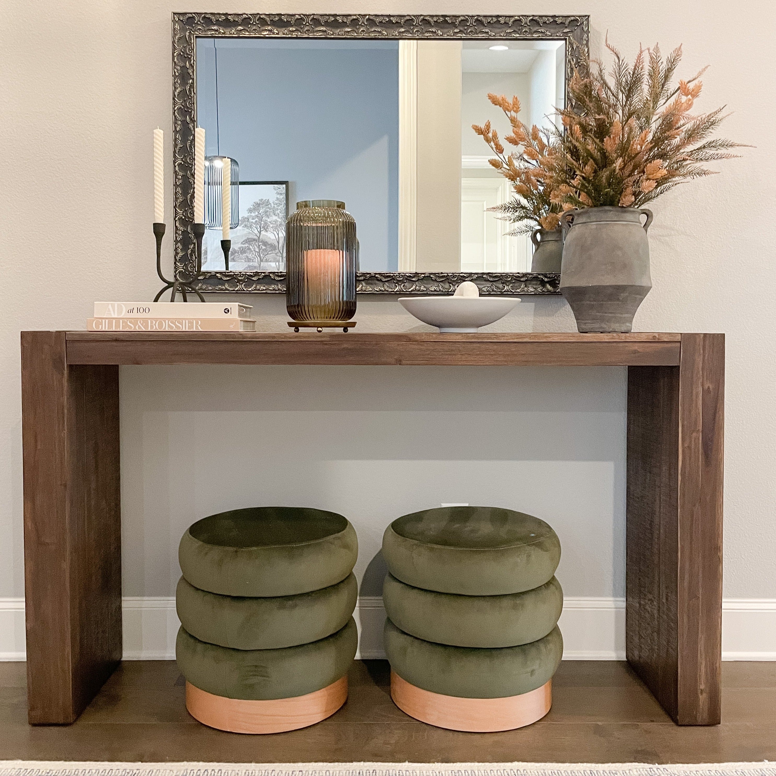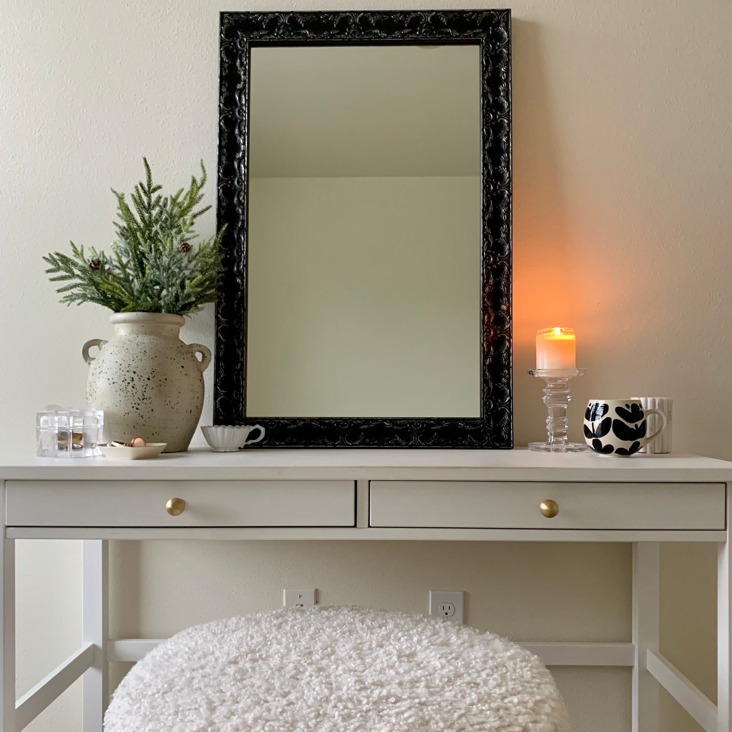 Begin by entering the desired height and width of your new custom framed mirror. Please note that the dimensions you select are for the outside edge of the frame, including the mirror.