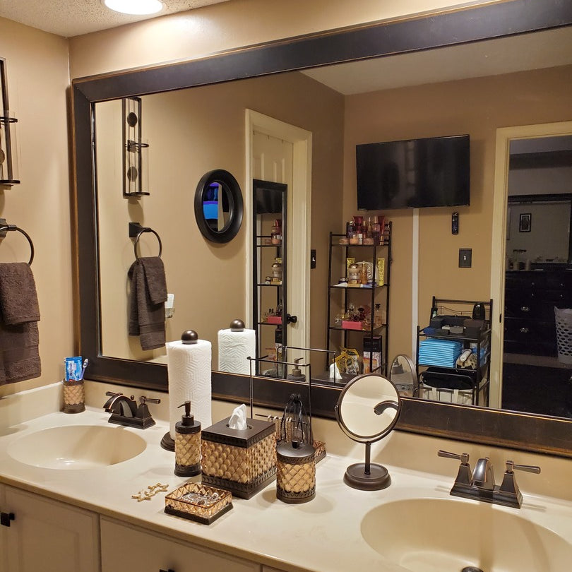 Begin by measuring the width and height of your mirror. Enter the number, in inches, using the form below. Be sure to select the correct fraction to ensure a perfect fit!