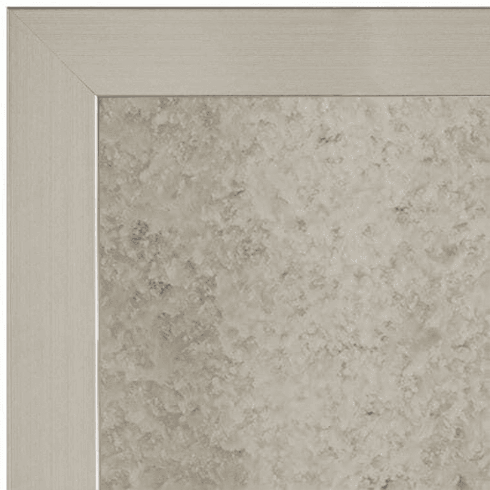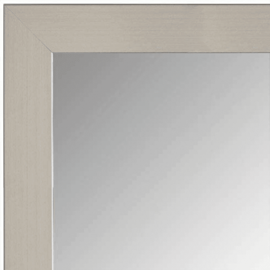 Brushed metallic tones are paired with the unpretentious lines of the Meade to create a contemporary framed mirror. The shallow depth of the Meade makes this an ideal choice for areas with limited space. Effortlessly complement brushed nickel finishes to bring cohesiveness into your space. This contemporary frame option also comes in a wide variety of other finishes—including wood grain, brushed metallics and solid colors—so you get the perfect custom framed mirror to complete your vision.