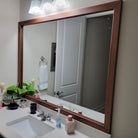 For mirrors that have the space, we like to add a 3/8" overhang to the frame in order to finish off the look and conceal the edge of the mirror. To see if we can include that overhang, please let us know the distance from each edge of your mirror to the nearest obstruction. Enter each distance measurement, in fractions of an inch, using the dropdown fields below.
